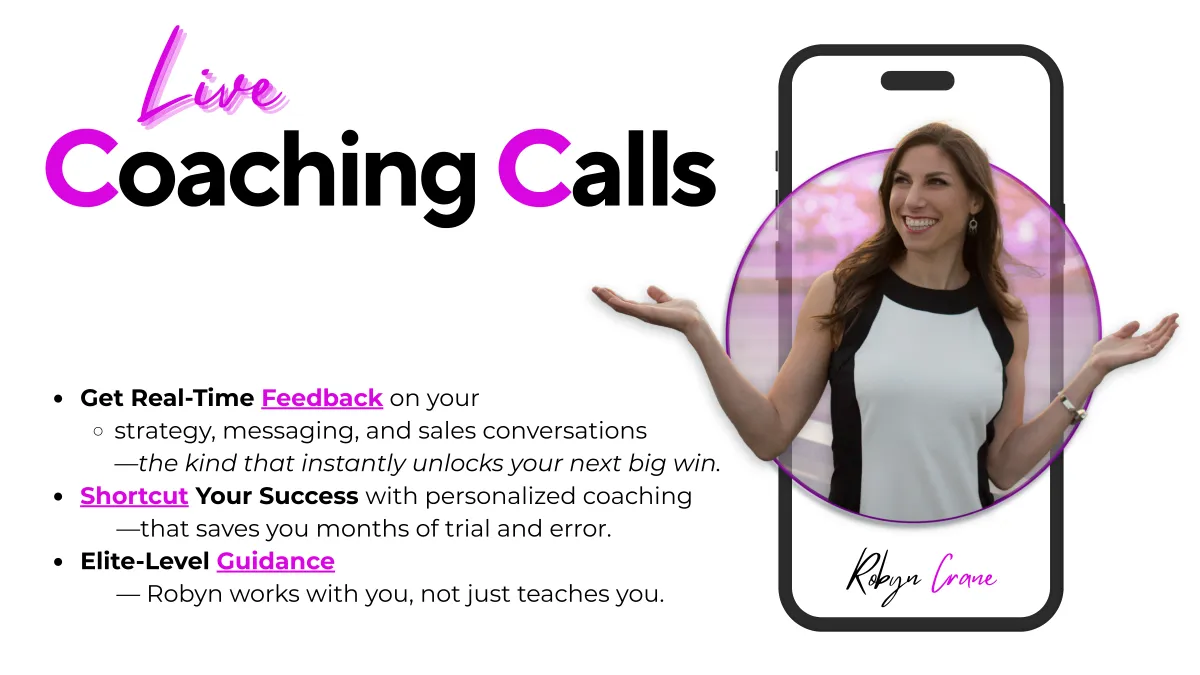LEVERAGE Coaching Sessions - Weekly Power Calls To Sharpen Your Message, Close More Deals, And Break Through What’s Been Holding You Back.